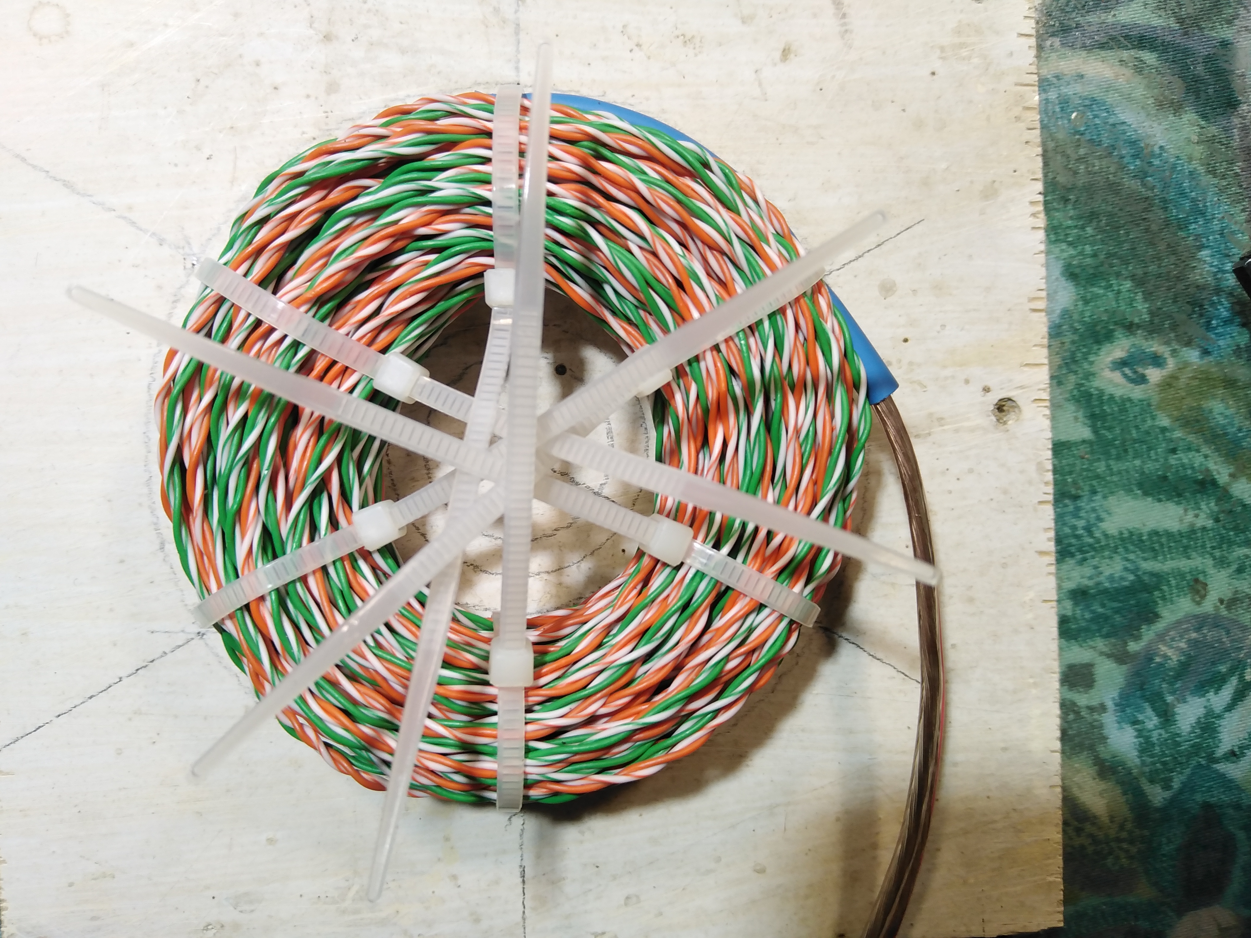 Для изготовления торов использую 12 метров медной витой пары, которую предварительно перематываю так, как это описано в видео на моём канале yukta.org на Ютубе.